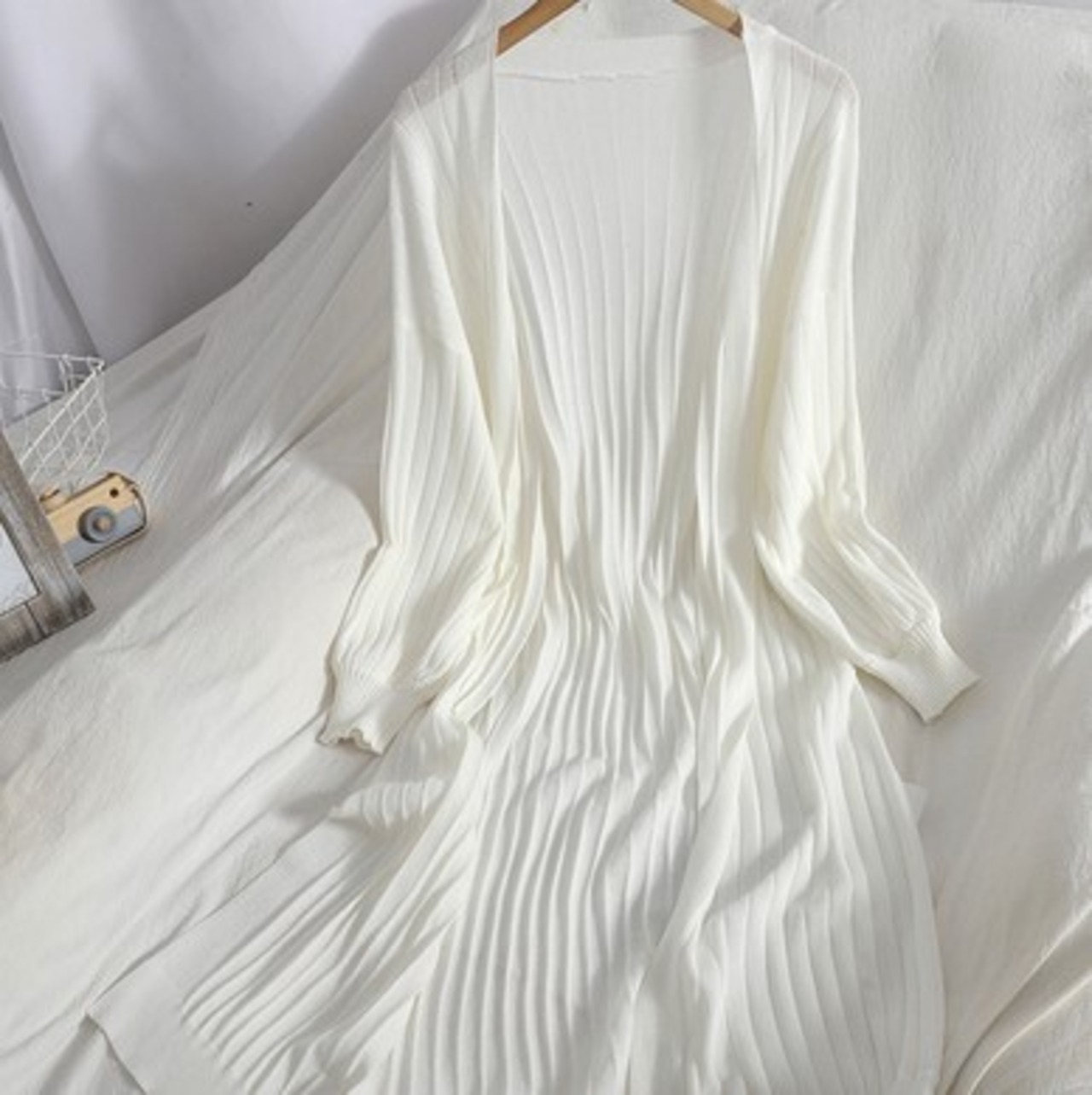 カーデガン ロング丈 ロング シースルー 長め プリーツ 長袖 ロングスリーブ 秋 冬 トレンド トレンディ シンプル ワンサイズ ピンク ホワイト ブラック グリーン アプリコット 新スタイル オールマッチ レディースファッション ロングカーディガン ニットジャケット ピュアカラー シンプル ルーズ 日焼け止めシャツ 女性用 婦人服 カジュアル お呼ばれ 着回し 重ね着 普段使い 普段着 きれいめ 大人クール スタイリッシュ オトナモード 人気 ゆるかわ こなれ感 乙女 おすすめ 秋冬ファッション
