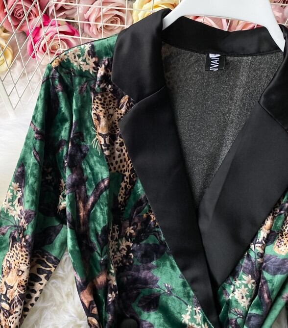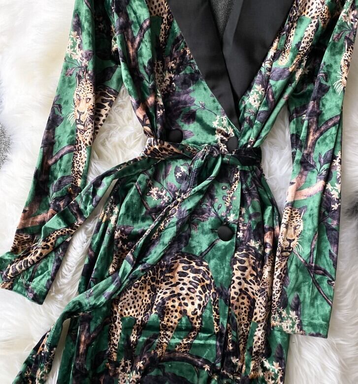 レディースアニマルワンピース カイキン襟前ボタンドレス ハイウエストドレス プリント柄ワンピース 20代 30代 40代 長袖 柄物 秋物 オータムドレス ホームパーティー プリントスカート アニマル ハイウエストアニマルワンピース ハイウエスト スカート カイキン襟 グリーン 前ボタンワンピース 買い物 クラブ パーティー プリントワンピース 長袖アニマル柄 ミドルスカート ハイウエストリボン紐付き 婦人 婦人ワンピース セクシー 前ボタン長袖ミドルドレス ドレス スカート カイキン襟アニマルワンピース