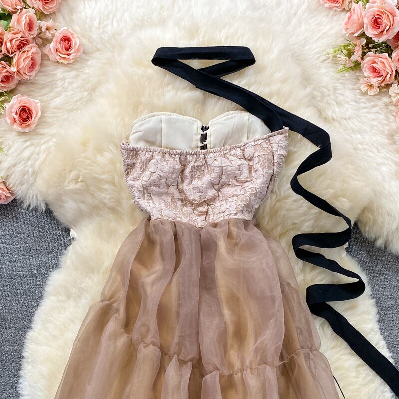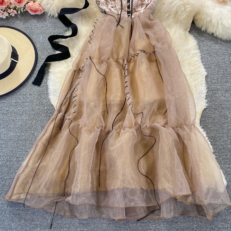 ワンピース レディース フレアワンピース ミドル丈 袖なし ノースリーブ 襟無し スリム フレア 細身 ファスナー リボン 編み込み チュール 透け感 ハイウエスト かわいい 大人可愛い きれいめ 大人 上品 ラブリー キュート おしゃれ 大人女子 こなれ感 エレガント 結婚式 二次会 披露宴 10代 20代 30代 OL 通勤 学生 通学 デート お出かけ 女子会 パーティー イベント リゾート 韓国系 オルチャン ファッション コーデ スタイル モテ 体系カバー 美脚 脚長 インスタ映え カーキ