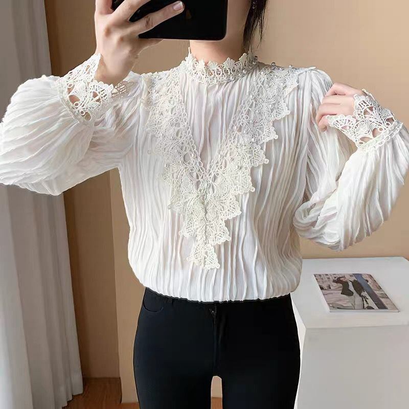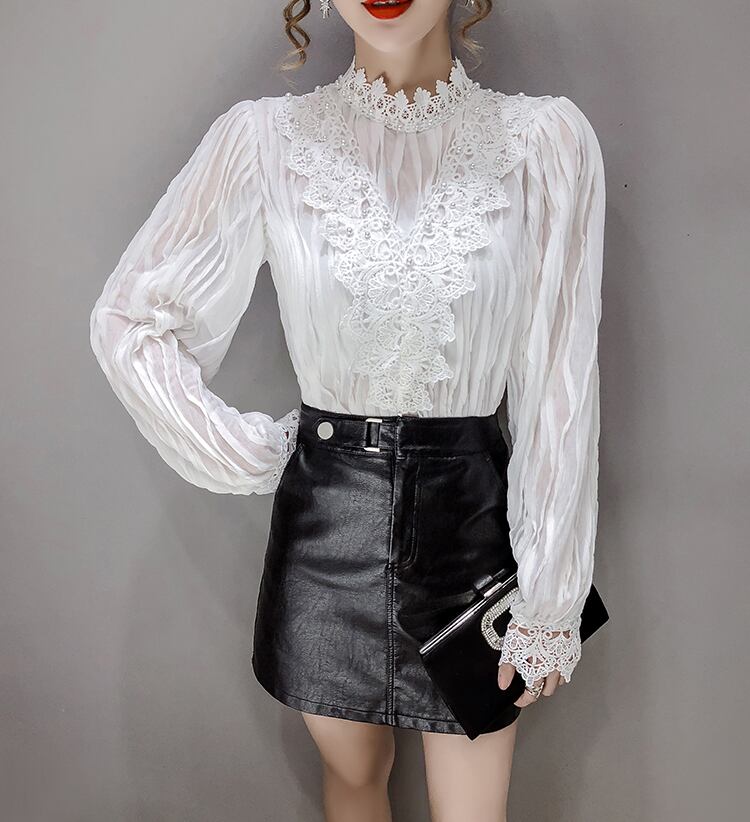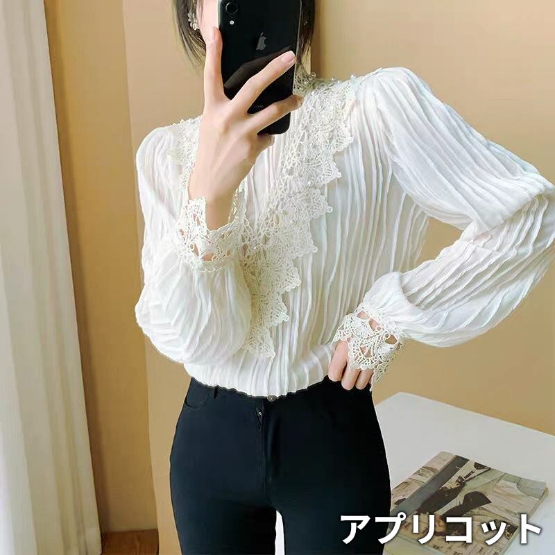 トップス レディース ブラウス シャツ 袖あり 長袖 スタンドカラー フリルカラー ビッグカラー フリルスタンドカラー ビジュー パール 不規則ストライプ レース 刺繍 透け感 シースルー 白 ホワイト アプリコット かわいい 大人可愛い 大人 大人女子 きれいめ おしゃれ お洒落 シンプル ラブリー キュート ガーリー 10代 20代 30代 通勤 学生 通学 デート お出かけ 女子会 休日 イベント 普段使い カジュアル こなれ感 個性的 ラフ ルーズ 抜け感 ゆったり ゆる 上品 パーティー