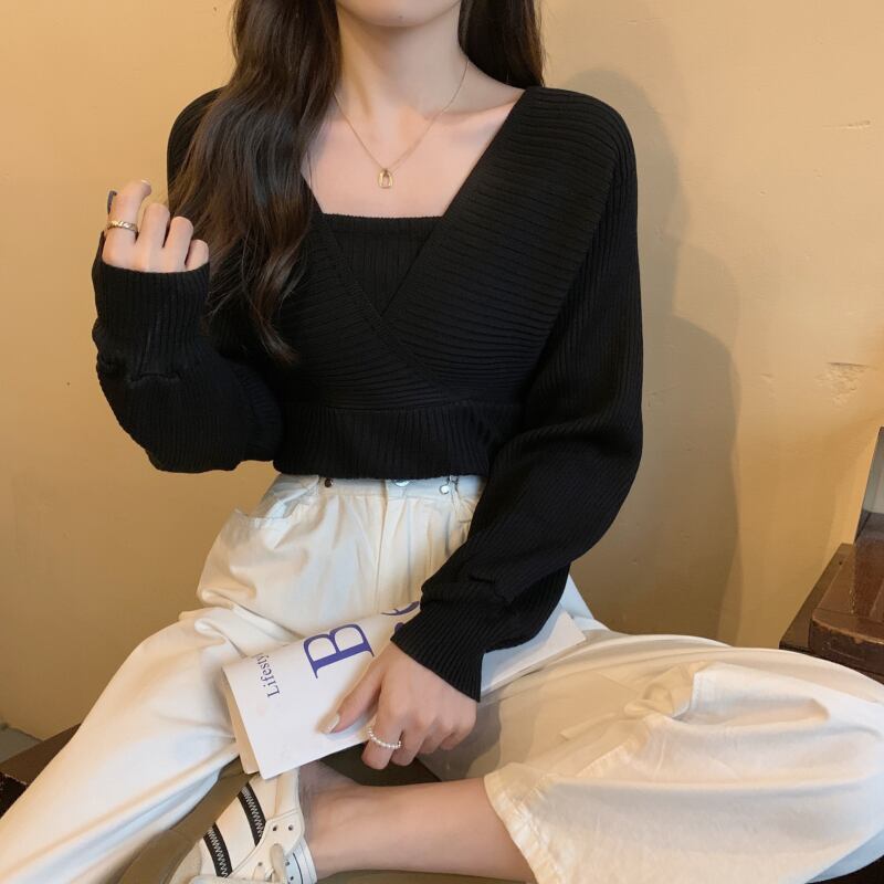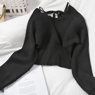 ニット リボン フリル カットソー 長袖 ロングスリーブ 秋冬トレンド トレンディ シンプル ワンサイズ ブラウス シャツ セーター レースアップ スリングニット トップ冬 新作 スリムスリミング 韓国 オルチャン 韓国デザイン 海外ファッション インスタ 映える 無地 Vネック ショートトップ ショート丈 かわいい 着回し 重ね着 モード系 シンプル クール バックリボン モダン カジュアル お呼ばれ 着回し 重ね着 パーティー お呼ばれ 二次会 飲み会 合コン お祝い プレゼント おしゃれ女子 クール