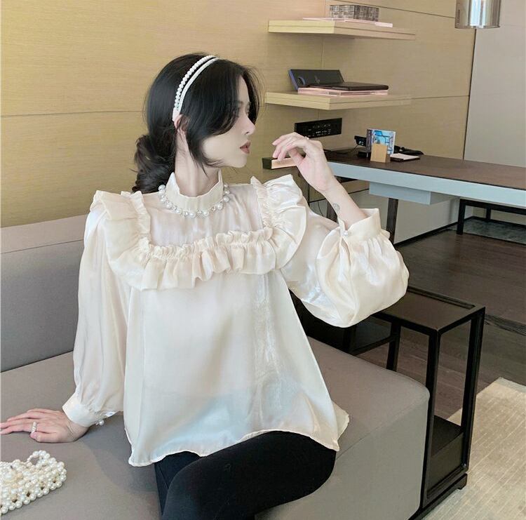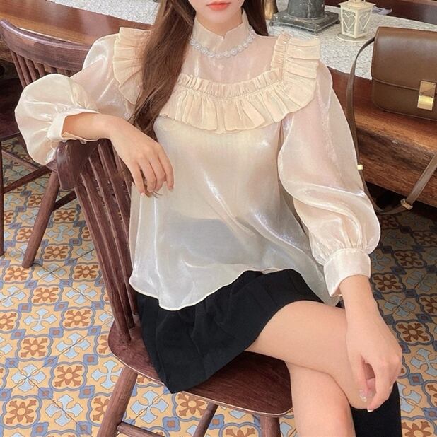 トップス レディース ブラウス 袖あり 長袖 ボリューム袖 ハイネック ギャザー フリル ビジュー 光沢 ひらひら 白 ホワイト 黒 ブラック ニュアンスカラー アプリコット かわいい 大人可愛い 大人 大人女子 きれいめ おしゃれ お洒落 シンプル ラブリー キュート ガーリー 10代 20代 30代 通勤 学生 通学 デート お出かけ 女子会 休日 イベント 普段使い カジュアル こなれ感 抜け感 とろみ感 ゆったり ゆる 上品 エレガント セクシー フォーマル 結婚式 二次会 披露宴 パーティー