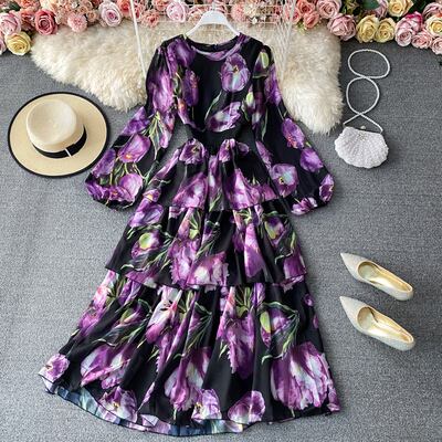 ワンピース レディース フレアワンピース Aラインワンピース マキシ丈 長袖 花柄 フラワー 春 秋 フレア スリム Aライン 伸縮性 かわいい 大人可愛い きれいめ シンプル カジュアル 大人 上品 おしゃれ お洒落 レトロ 大人可愛い 大人女子 個性的 エレガント モダン Uネック マキシ 袖あり 大人カラー ベイクドカラー M L XL 2XL 20代 30代 40代 デート お出かけ 公園デビュー 女子会 休日 着回し 普段使い 韓国 韓国系 コーデ モテ トレンド 流行 インスタ映え