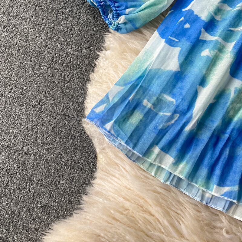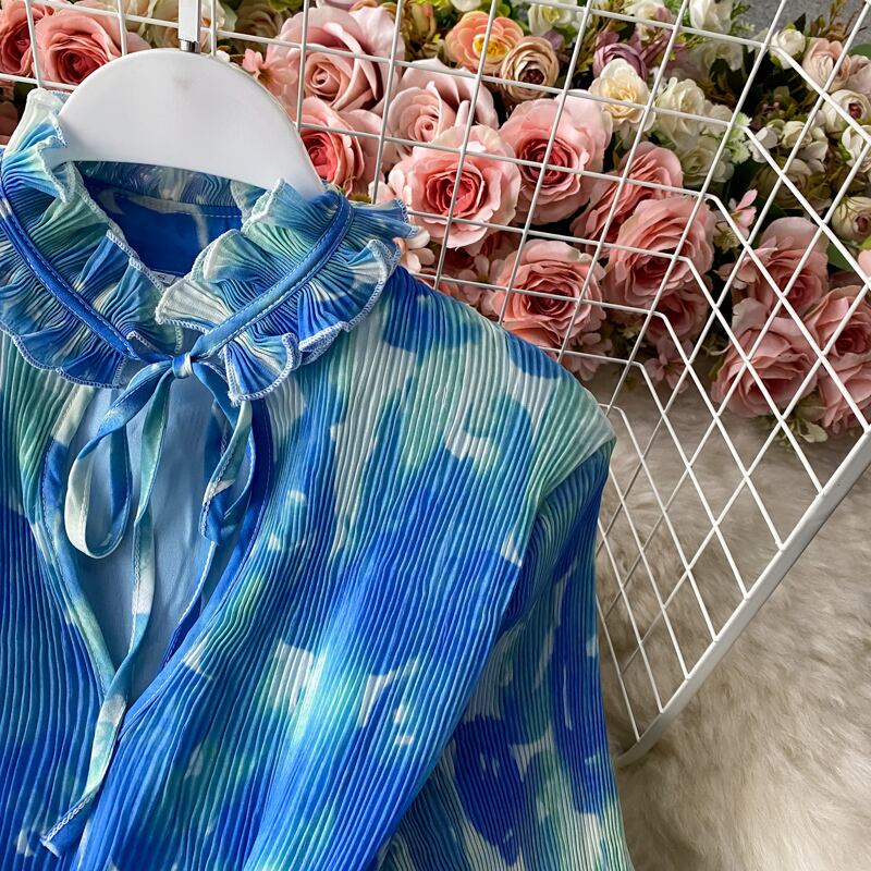 ワンピース レディース フレアワンピース Aラインワンピース ミモレ丈 長袖 柄 春 秋 フレア Aライン プリーツ かわいい 大人可愛い きれいめ シンプル カジュアル 大人 上品 おしゃれ お洒落 大人可愛い 大人女子 キュート 個性的 エレガント Vネック ミモレ 袖あり 青 ブルー くすみカラー S M L XL 20代 30代 女性用 デート お出かけ 女子会 パーティー イベント 旅行 着回し 普段使い 韓国 韓国系 オルチャン ファッション モテ プチプラ トレンド 流行 インスタ映え