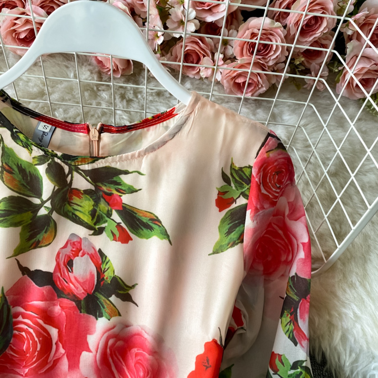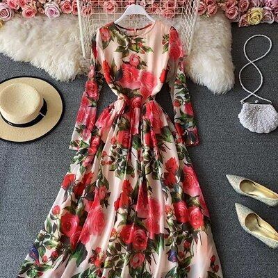 ワンピース レディース フレアワンピース Aラインワンピース ミモレ丈 柄 花柄 フラワー 春 秋 フレア スリム Aライン ファスナー かわいい 大人可愛い きれいめ 大人 上品 おしゃれ お洒落 レトロ エキゾチック 大人可愛い 大人女子 キュート 個性的 Uネック ロング 袖あり ベイクドカラー バイカラー S M L XL 2XL 20代 30代 デート お出かけ 公園デビュー 女子会 休日 着回し 韓国 韓国系 オルチャン ファッション コーデ モテ トレンド 流行 インスタ映え