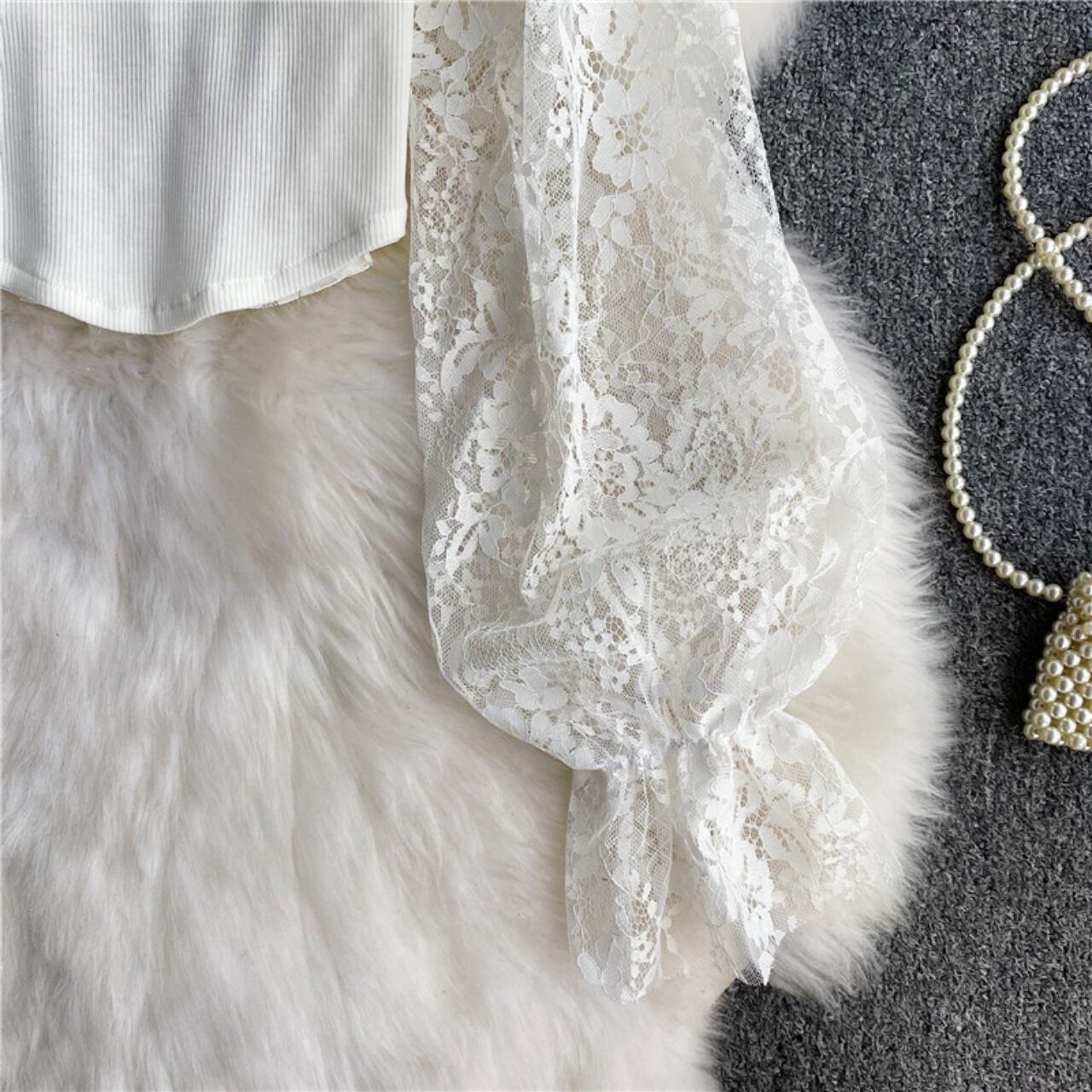 肩から袖口にかけて贅沢に使用した繊細レースがかわいいトップス♡
