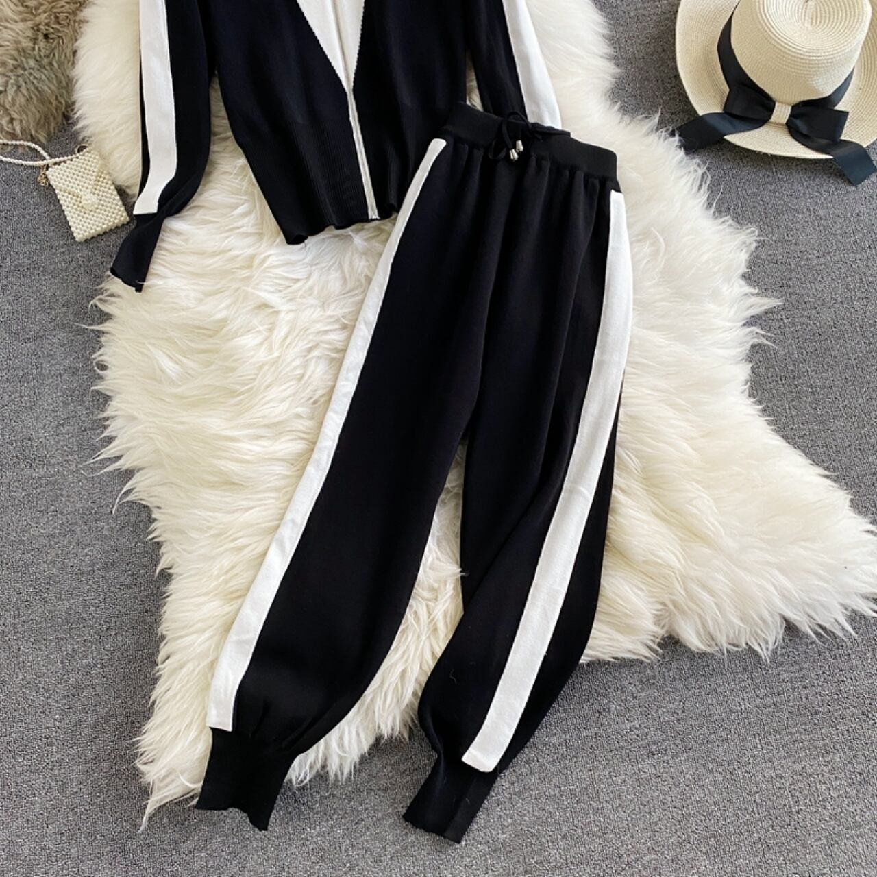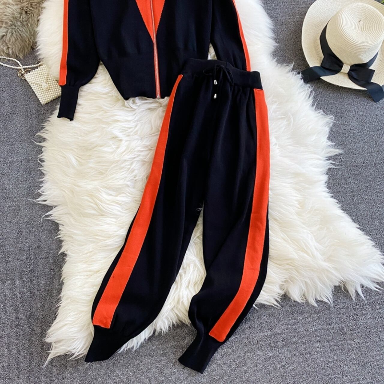 セットアップ レディース 2点セット ジャージ風 ニット素材 トップス 前開き ファスナー ジップアップ スタンドカラー 長袖 Vデザイン ボトムス パンツ サルエル ラインパンツ 裾リブ ウエストゴム クール メンズライク カジュアル ラフ リラクシー きれいめ シンプル かっこいい 大人 オシャレ こなれ感 スポーティー ワンサイズ 2カラー 学生 OL お出かけ 公園 休日 ジム アウトドア イベント 着回し 韓国系 ファッション 簡単コーデ スタイル 楽ちん トレンド おすすめ 人気 デザイン