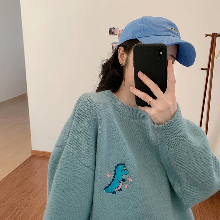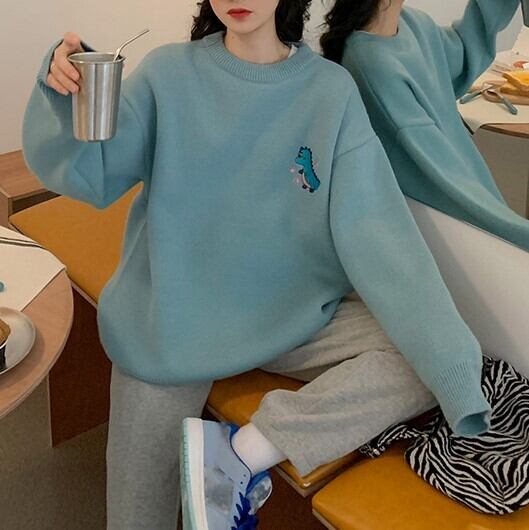 トップス トップ 秋冬トレンド ニットトレーナー 怪獣 アップリケ 柔らかい カジュアル 普段着 普段使い 着回し レディースファッション かわいい 大人女子 フワフワ カレッジスタイル かわいい ホワイト ブラック イエロー ブルー オレンジ 漫画プリント プルオーバー セーター 女性 ルーズ ラウンドネック 厚手 長袖セーター トップス秋冬 海外デザイン 韓国デザイン オルチャン 海外ファッション お家時間 リラックス ゆるかわファッション 動きやすい 暖かい 寒がり 冷え性 大人ファッション