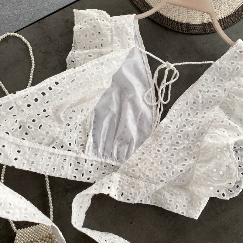 ホルターネック トップス Vネック ノースリーブ ベスト ホワイト 白 ウエストリボン レース フリル ショート丈 スリム タイト レディース 無地 高見え こなれ感 トレンド 流行 韓国 韓国風 オルチャン 大人女子 大人可愛い ヌン活 普段着 デート 女子会 インスタ映え おしゃれ お洒落 スタイルアップ 個性的 パーティー 休日 イベント 着回し 10代 20代 30代 40代 お出かけ 旅行 エレガント リゾート 海外 旅行 重ね着 ハイウエスト スモールシャツ 腹チラ ミニ丈 海 アウトドア