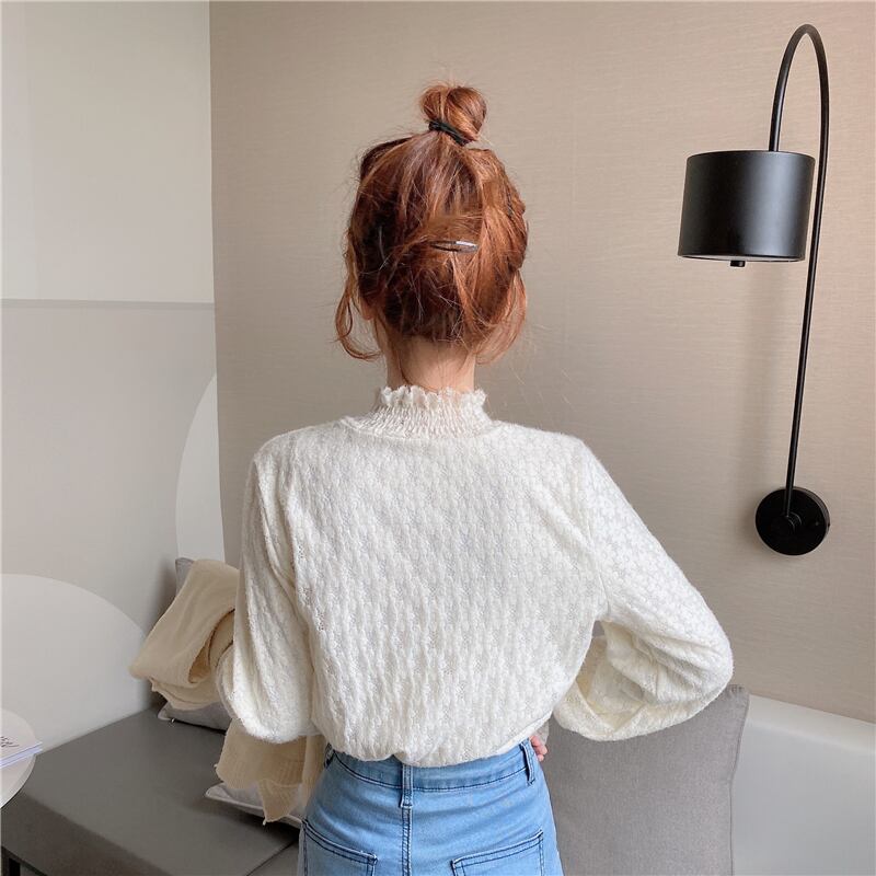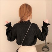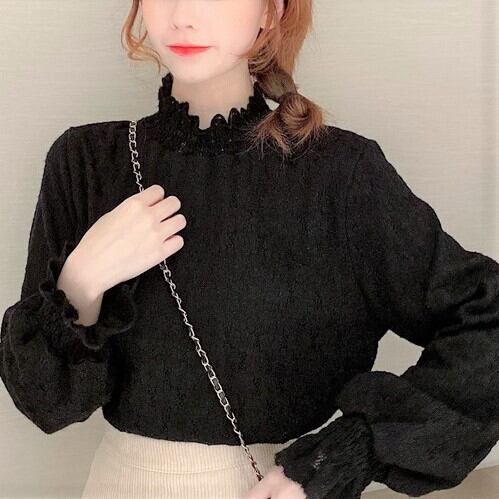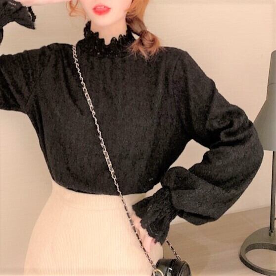 シャツ トップス トップ パフスリーブ 長袖 ロングスリーブ シック ランタンスリーブ ホワイト ブラック ハーフネック レース 花柄 フラワーレース 秋冬トレンド 秋 冬 新作 かわいい 大人女子 お呼ばれ パーティー 二次会 飲み会 合コン 女子会 マストアイテム シンプル 透け感 とろみ感 厚手 暖かい クール キュート ラブリー カジュアル 普段着 普段使い 着回し レディースファッション 婦人服 レトロデザイン 韓国 デザイン オルチャン 海外ファッション ベルベット プルオーバーシャツ