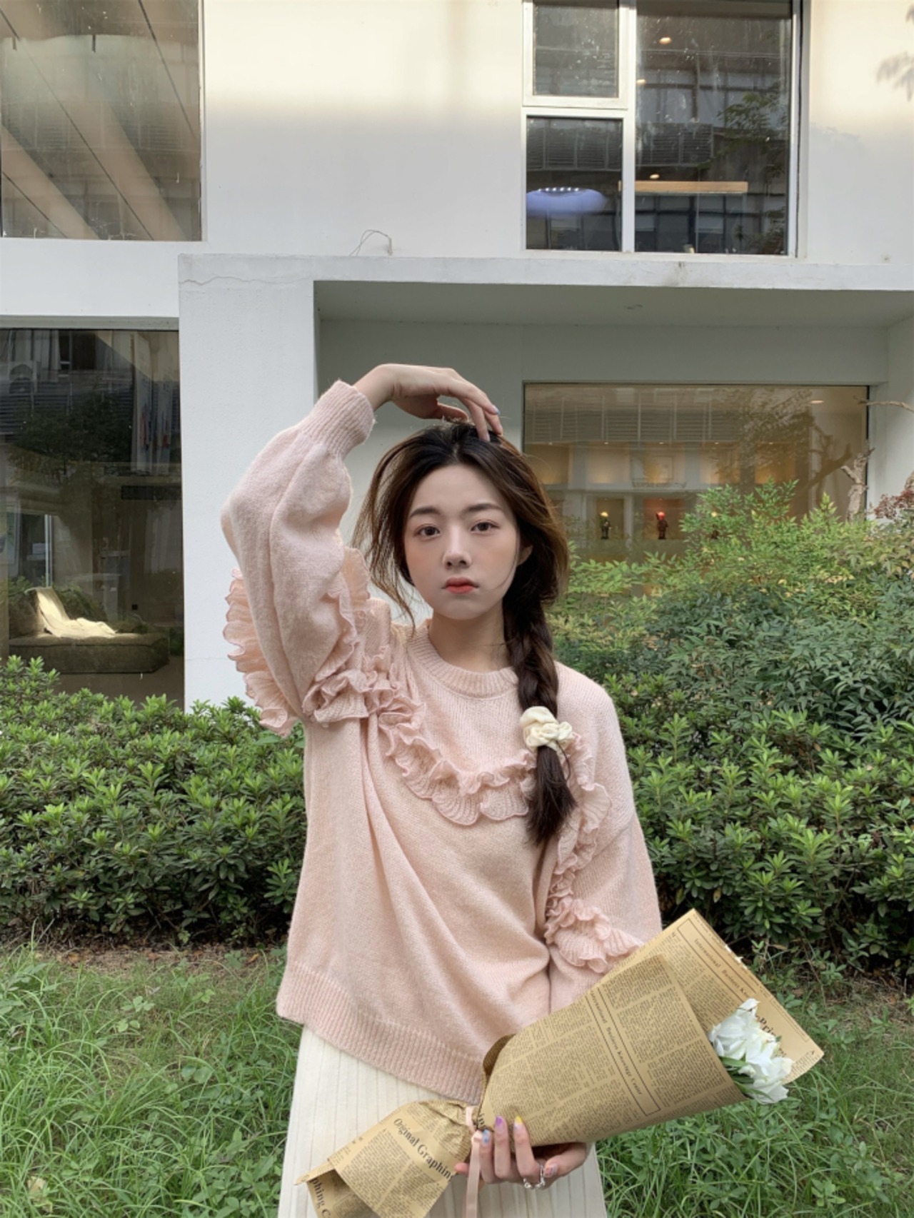 お花をまとったようなニットです。
