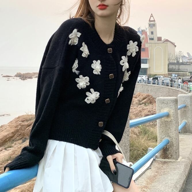 カーディガン トップス ブラック 暖かい お出かけ 羽織り ニットセーター 花柄刺繍 デザイン重視 新作 レトロデザイン 今風 オシャレデザイン デイリー 合わせやすい 大人綺麗 かわいい 大人可愛い 大人 大人女子 きれいめ おしゃれ お洒落 シンプル ラブリー キュート ガーリー 10代 20代 30代 通勤 学生 通学 デート お出かけ 女子会 休日 イベント 普段使い カジュアル こなれ感 抜け感 とろみ感 ゆったり ゆる 上品 エレガント パーティー 定番 着回し クール リゾート 旅行 モテ