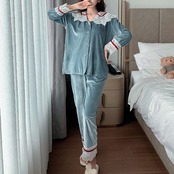 レディースパジャマ 秋冬パジャマ 上下セット セット パンツ 長ズボン トップス 長袖 ロングスリーブ 秋 冬トレンド トレンディ シンプル レース リボン ベルベット 素材 女子力アップ 大人女子 かわいい おしゃれ ラグジュアリー ファッションセンス スタイリッシュ 海外ファッション プチプラ ランキング キュート お勧め 韓国ファッション オルチャン 韓国デザイン ファッショナブル 海外スタイル パジャマレディース 冬長袖 ニューレース プリンセス ツーピーススーツ ナイトウェア ルームウェア