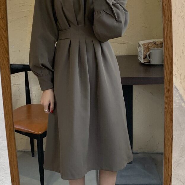 秋冬ワンピース ワンピ ワンピース ドレス かわいい クール モテ メンズライク モテ S M L XL ブラウン レトロデザイン 人気 長袖 ロングスリーブ 秋 冬 トレンド トレンディ シンプル パフスリーブ こなれ感 カジュアル 普段着 普段使い おしゃれファッション アイテム ファッショナブル シャツ風ワンピース シャーリング リボン リボンベルト オシャレ レディースファッション レディース 婦人服 おしゃれ女子 ラージサイズ フレンチレトロドレス 新秋冬 スリム ラウンドネック ロングスカート