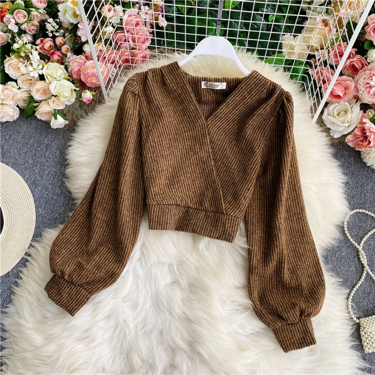 ニット レディース トップス プルオーバー Vネック カシュクール風 長袖 ボリューム袖 ショート丈 シンプル ベーシック 大人女子 かわいい 大人可愛い 上品 きれいめ カジュアル ラフ オシャレ お洒落 かっこいい クール こなれ感 キュート ワンサイズ 3カラー 秋カラー ベーシックカラー 無地 学生 通学 OL 通勤 休日 ママ 公園 普段使い お出かけ デート イベント ホームパーティー 旅行 着回し 韓国系 ファッション 簡単コーデ スタイルアップ あったか 楽ちん おすすめ 人気 モテ