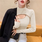 ニットトップス デザイン重視 長袖 ハイネック ボトルネック フロントオープン プルオーバー 伸縮性 大人っぽい 無地 単色 黒 ブラック アプリコット オフホワイト グリーン パステルカラー ナチュラルカラー かわいい 大人可愛い 大人 大人女子 きれいめ おしゃれ セクシー キュート 20代 30代 学生 通学 デート お出かけ 女子会 休日 イベント 普段使い フィット ボディコンシャス こなれ感 抜け感 ゆる カジュアル モテ 着回し かっこかわいい 韓国ファッション インポート 低価格 お買い得