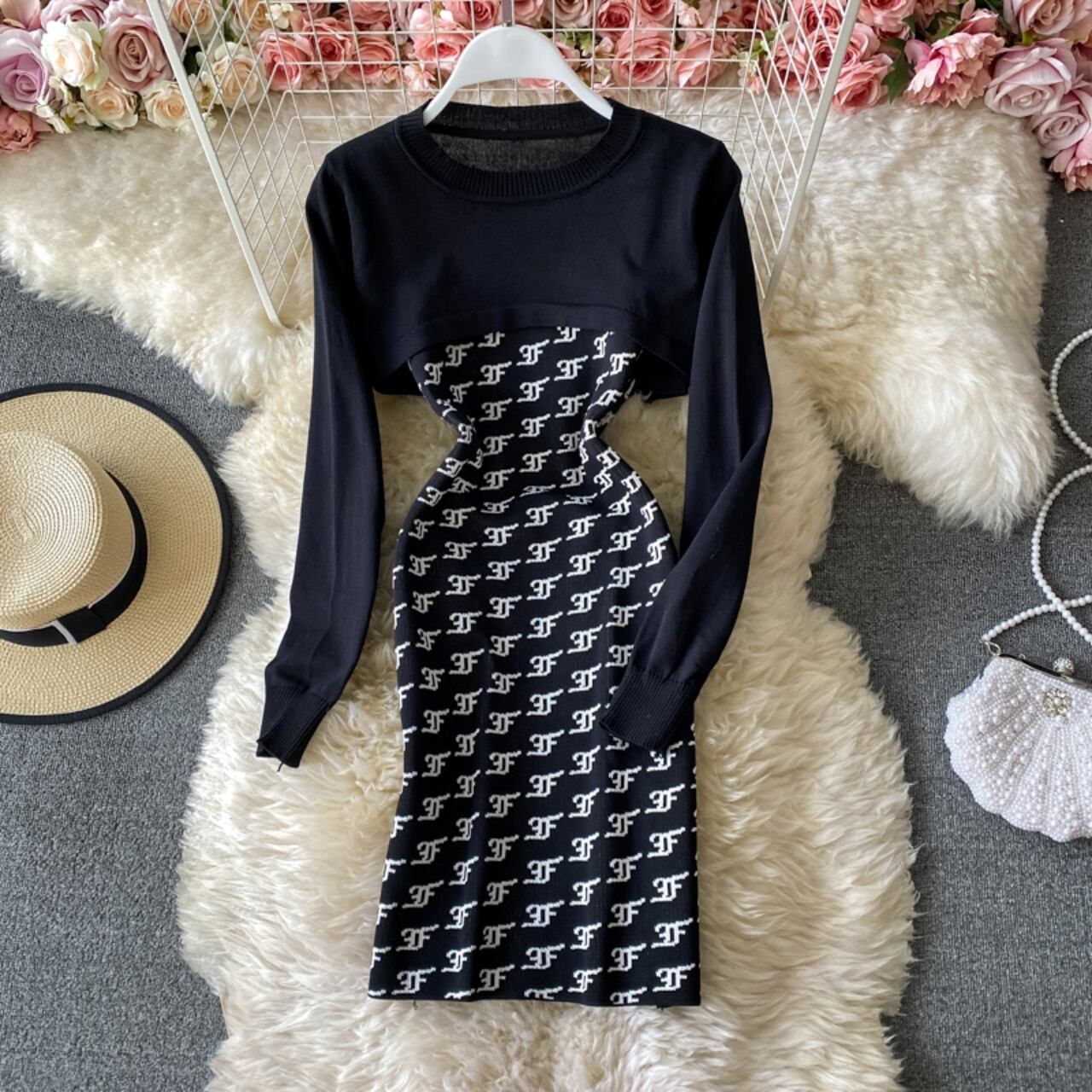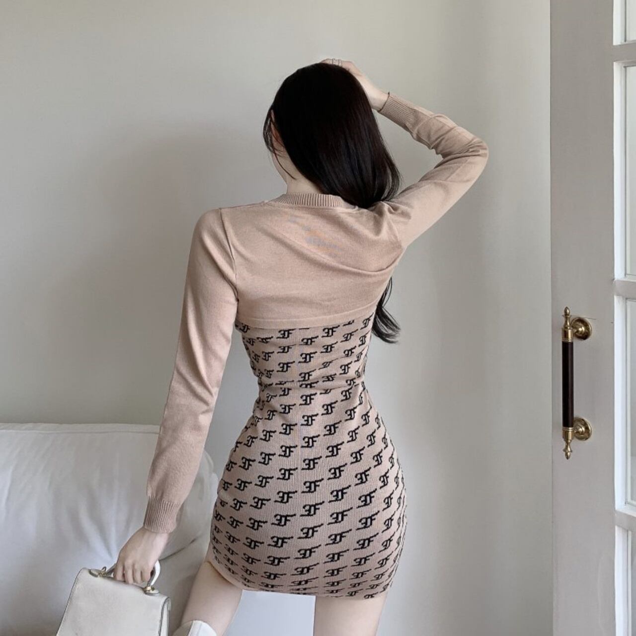 ワンピース レディース セットアップ 2点セット レイヤード トップス 長袖 ショート丈 クルーネック 無地 キャミワンピ タイト 柄物 ミニ丈 大人女子 かわいい 大人可愛い きれいめ カジュアル ラフ オシャレ 大人 セクシー こなれ感 クール ワンサイズ 2カラー ベージュ ブラック 大人カラー 10代 20代 学生 OL 通学 休日 女子会 食事会 お出かけ デート 旅行 普段使い 着回し ファッション 簡単コーデ スタイルアップ 楽ちん 体型カバー 美脚 脚長 おすすめ 人気 トレンド モテ