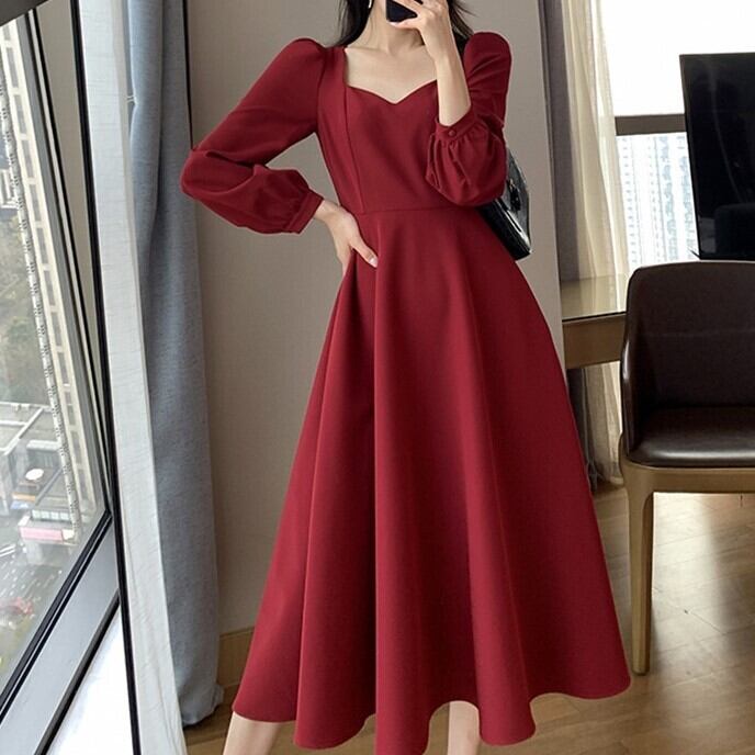 ドレス ナイトドレス パーティードレス ワンピースドレス 秋冬新作 トレンド トレンディ シンプル レトロ ブラック レッド S M L シンプルドレス 大人クール スタイリッシュ オトナモード パーティー お呼ばれ パーティーイベント ハウスパーティー 披露宴 お呼ばれ 特別な日 人気 インスタ映え 映える 主役級 大人クール デザイン重視 プラスサイズ 女性 スクエアネック 海外デザイン インポート プチプラ ランキング 大人女子 大人クール 長袖 パフスリーブドレス インスタ映え 映える モテ