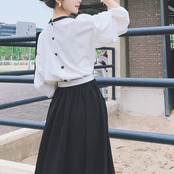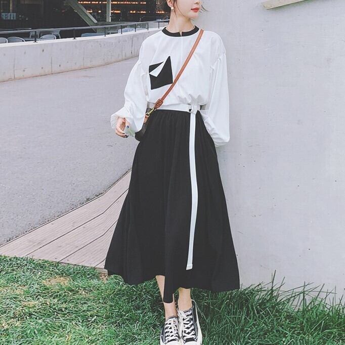 ワンピース 秋冬ワンピース トレンド トレンディ ホワイト ブラック ロング丈 ロング パフスリーブ ボリューム袖 S M L XL モダン おしゃれ シック バックボタン ベルト ロングベルト 大人クール デザイン重視 白黒 お出かけ カジュアル 普段着 普段使い 着回し 二次会 飲み会 合コン 女子会 モテ 20代 30代 40代 サイズ豊富 かっこいい メンズライク オルチャン 韓国デザイン 海外ファッション インポートファッション 海外デザイン 大きいサイズ 婦人服 おしゃれ女子 ステッチドレス
