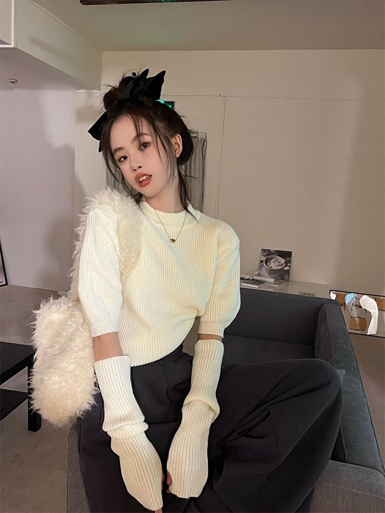 ニットトップス もこもこ 半袖 アームウォーマー付き ボトルネック ラウンドネック パフスリーブ バブルスリーブ おしゃれ 可愛い かわいい 大人可愛い 大人 大人女子 お洒落 シンプル 無地 単色 春秋 薄手ニット 10代 20代 30代 学生 通学 デート お出かけ 女子会 休日 イベント ランチ 飲み会 ショッピング 女の子っぽい 普段使い カジュアル こなれ感 ラフ ルーズ 抜け感 ゆったり ゆる 旅行 体系カバー 着回し 定番 レトロ ゆるふわ 韓国 簡単コーデ インポート 韓国ファッション
