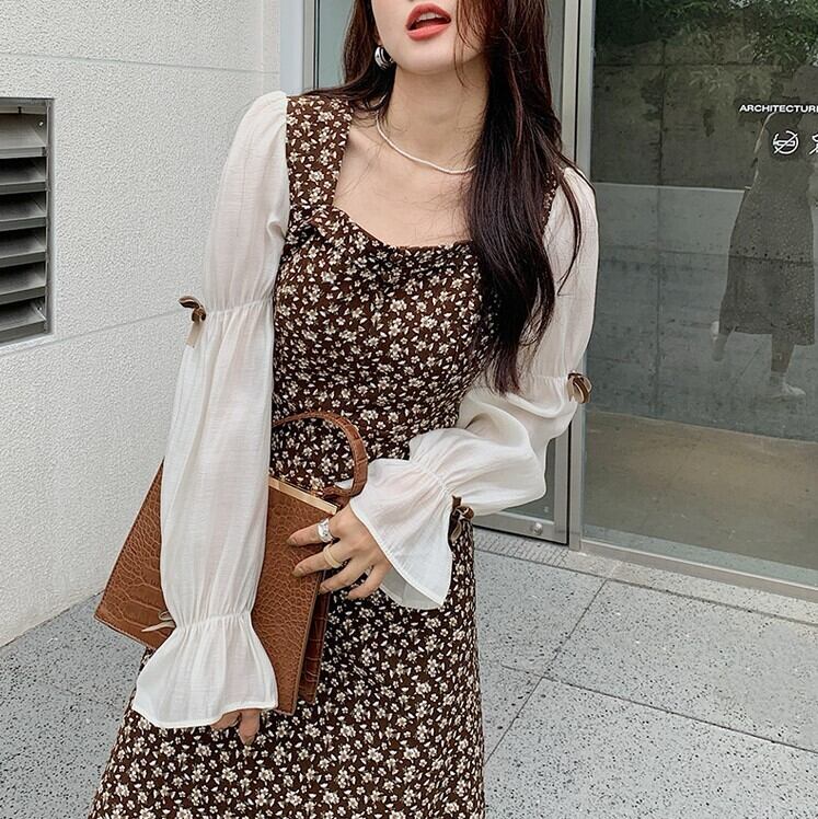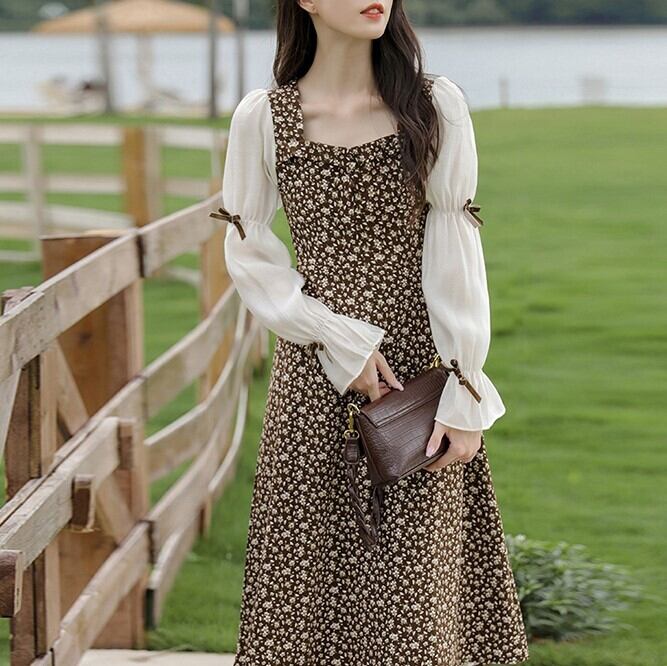 花柄ワンピース フラワープリント Aラインワンピース ロング丈 シースルー パフスリーブ リボン ラージサイズ レディース フレンチ スクエアネック 長袖ワンピース 新作 フローラル シフォンロングスカート カジュアル 普段着 普段使い お呼ばれ パーティー イベント 二次会 発表会 同窓会 旅行 パーティー イベント 披露宴 海外ファッション プチプラ ランキング キュート お勧め 大人きれい レトロデザイン 流行 トレンド トレンディファッション プチプラ ランキング キュート お勧め 大人女子