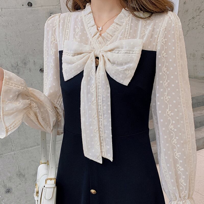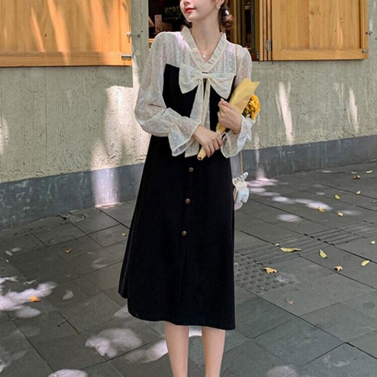 ワンピース ミディアム ミディ丈 秋冬トレンド トレンディ 秋冬ワンピース ワンピ ブラック パフスリーブ フリル 長袖ワンピース リボン ネクタイ リボン M L XL 2XL 3XL 4XL サイズ豊富 大人女子 オシャレ オトナモード クール スタイリッシュ 秋冬デザイン レトロデザイン 流行 カジュアル お呼ばれ パーティー イベント 二次会 発表会 同窓会 イベント 新しいスタイル ブラックドレス 切り替えしデザイン モダン シック 大人可愛い モテ きれいめ こなれ感 韓国デザイン オルチャン