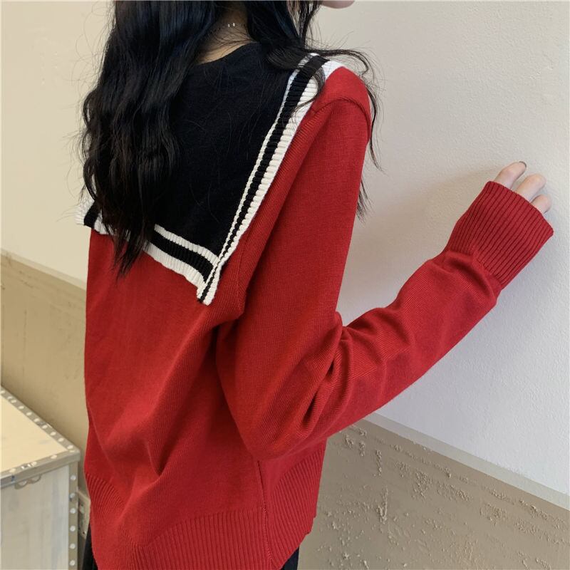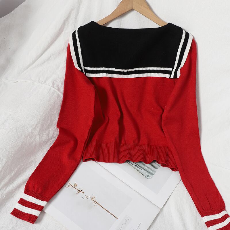 カーディガン ニット セーラー服 ワンサイズ ブラック ホワイト レッド 長袖 ロングスリーブ 秋冬トレンド トレンディ シンプル 乙女 学生 学園祭 10代 20代 カジュアル 普段使い 着回し 重ね着 かわいい お勧め レトロデザイン 今風 コントラスト カーストライプ 長袖セーター 新しい オールマッチ 韓国デザイン レディースファッション レディース 婦人服 おしゃれ女子 可愛らしい オルチャンファッション 韓国デザイン プチプラ デザイン重視 大人クール キュート ラブリー 制服 学校 人気
