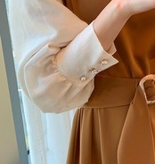 ワンピース パフスリーブ ワンピースドレス シック モダン ロング丈 ロングワンピース シンプル レトロデザイン 今風 トレンド トレンディ 流行 レディースファッション 婦人服 カジュアル お呼ばれ 着回し 重ね着 パーティー イベント 二次会 発表会 披露宴 飲み会 OL 通勤 会社 学生 10代 20代 30代 40代 オシャレ おしゃれ女子 必見 きれいめ こなれ感 大人クール デザイン 韓国デザイン オルチャン 海外ファッションプチプラ キュート メンズライク S M L キャラメル 女性用
