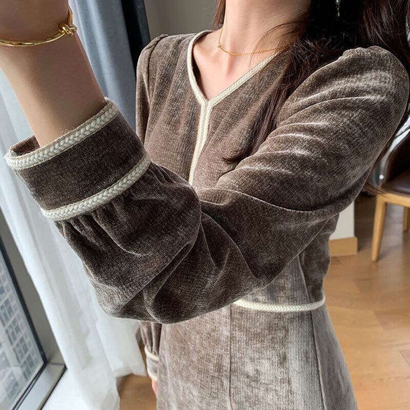 ワンピース ワンピ ワンピースドレス ブラウン ベルベット ロング丈 ロング ワンピース シンプル レトロデザイン 今風 トレンド トレンディ 流行 レディースファッション 婦人服 かわいい オシャレ クール 大人オシャレ M L XL 2XL 3XL 4XL 大人女子 おしゃれ女子 オシャレ オトナモード クール スタイリッシュ 海外デザイン 韓国デザイン オルチャン 海外ファッション 秋冬ファッション プラスサイズ ベルベットドレス 新しい フレンチレトロスタイル サイズ豊富 プチプラファッション
