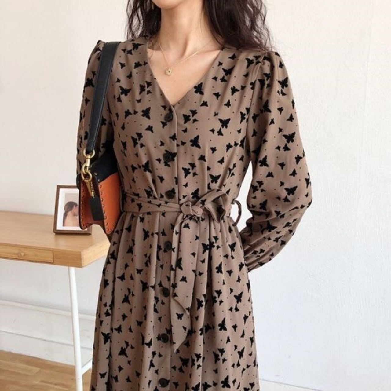 ワンピース ワンピ 秋冬ワンピース トレンド ブラウン ウエストリボン ベルト かわいい オシャレ クール 大人女子 オシャレ オトナモード クール スタイリッシュ 海外デザイン プチプラ ミディアム丈 ミディ ひざ下 綺麗目 カジュアル ストリート きれいめ こなれ感 お出かけ パーティー ファッション レディースファッション レディース 婦人服 サイズ豊富 S M L XL 2XL 3XL 4XL 10代 20代3 0代 プラスサイズ 女性 新しいドレス Vネック ミドル丈 ボトミングスカート モテ
