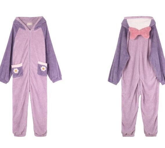 パジャマ 暖かい 秋冬 モコモコ フワフワ つなぎパジャマ フロントジッパー フード付き 帽子 厚手 寒さ予防 長袖 長ズボン ルームウェア 寝具 寝間着 お家時間 ゆるかわ ルーズ ワンサイズ パープル かわいい リボン アップリケ花柄 フラワー カジュアル レディースファッション レディース 婦人服 おしゃれパジャマ ホットアイテム トレンディ 流行 レディースファッション 冬 オールインワンパジャマ 女性 新しい 冬スタイル ベルベット アウター ウェア ナイトガウン パジャマパーティー お泊り