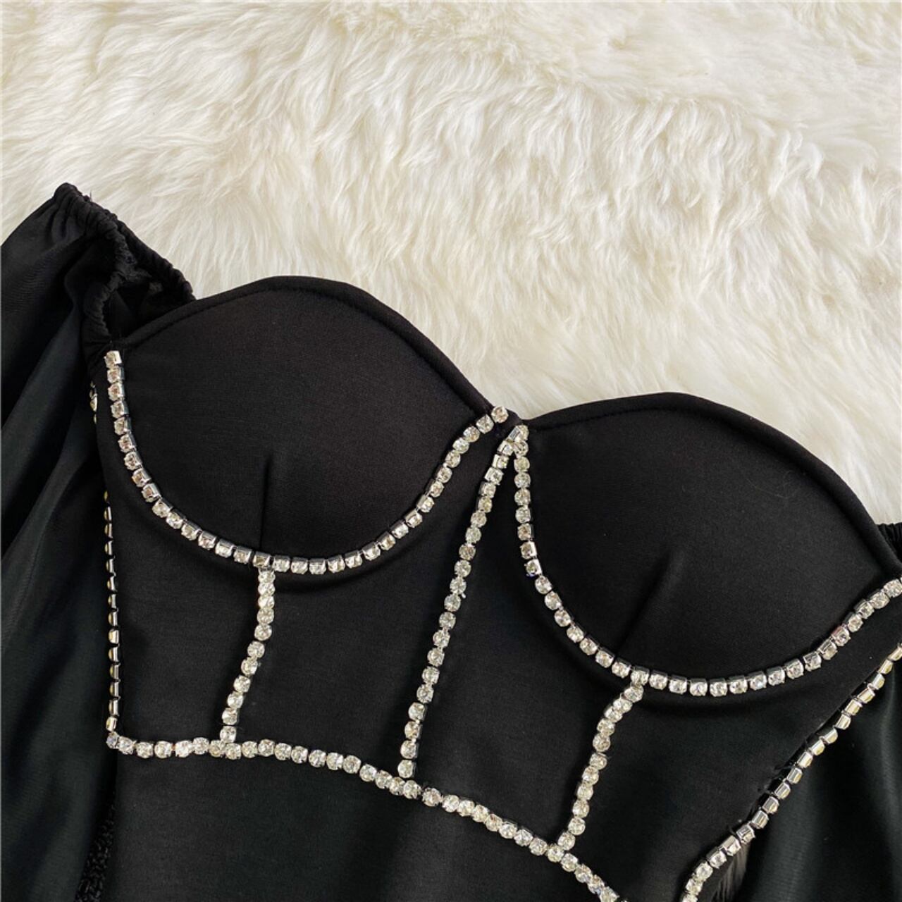 胸元のラインストーンはキラキラ華やかで1枚で主役級のコーデに仕上がります♡