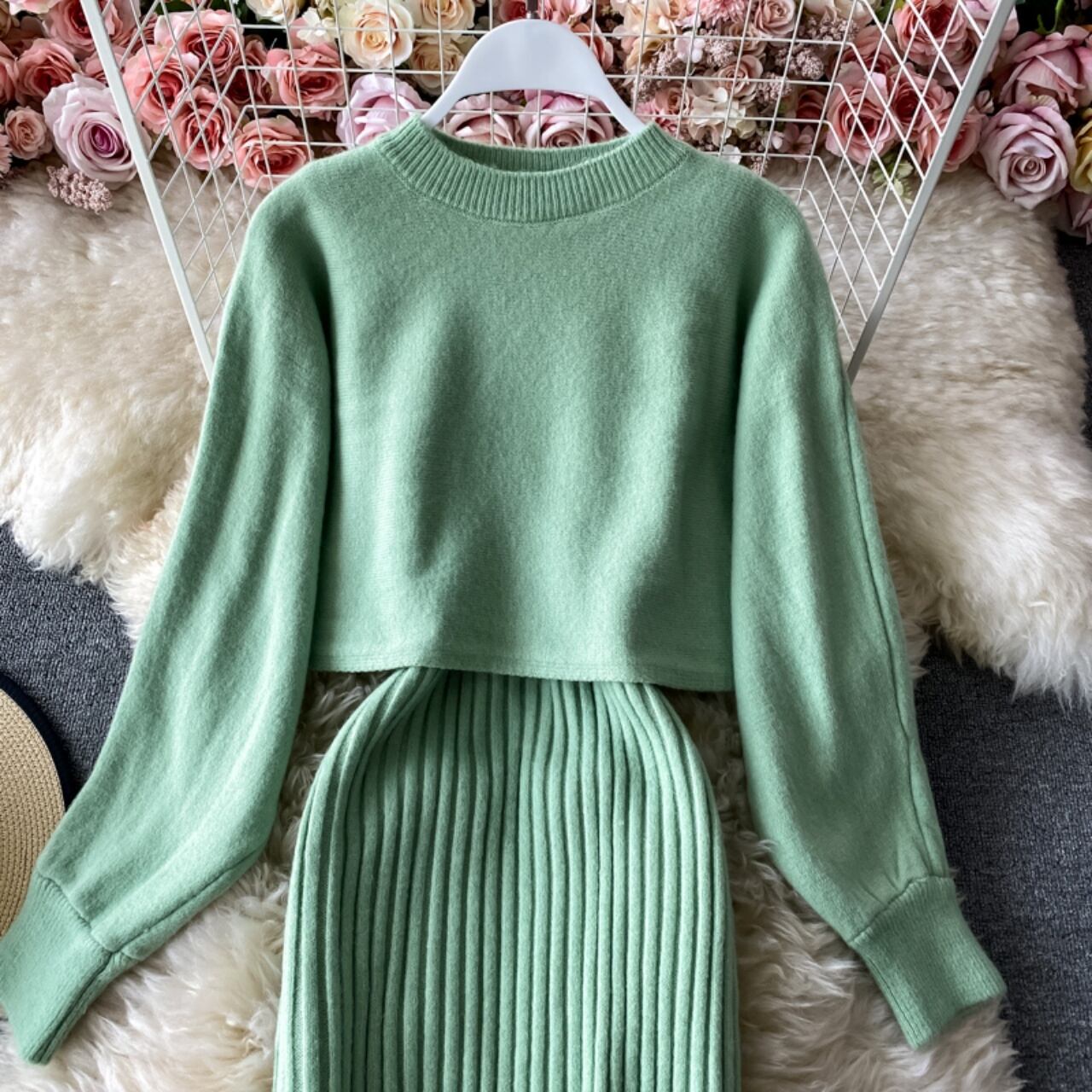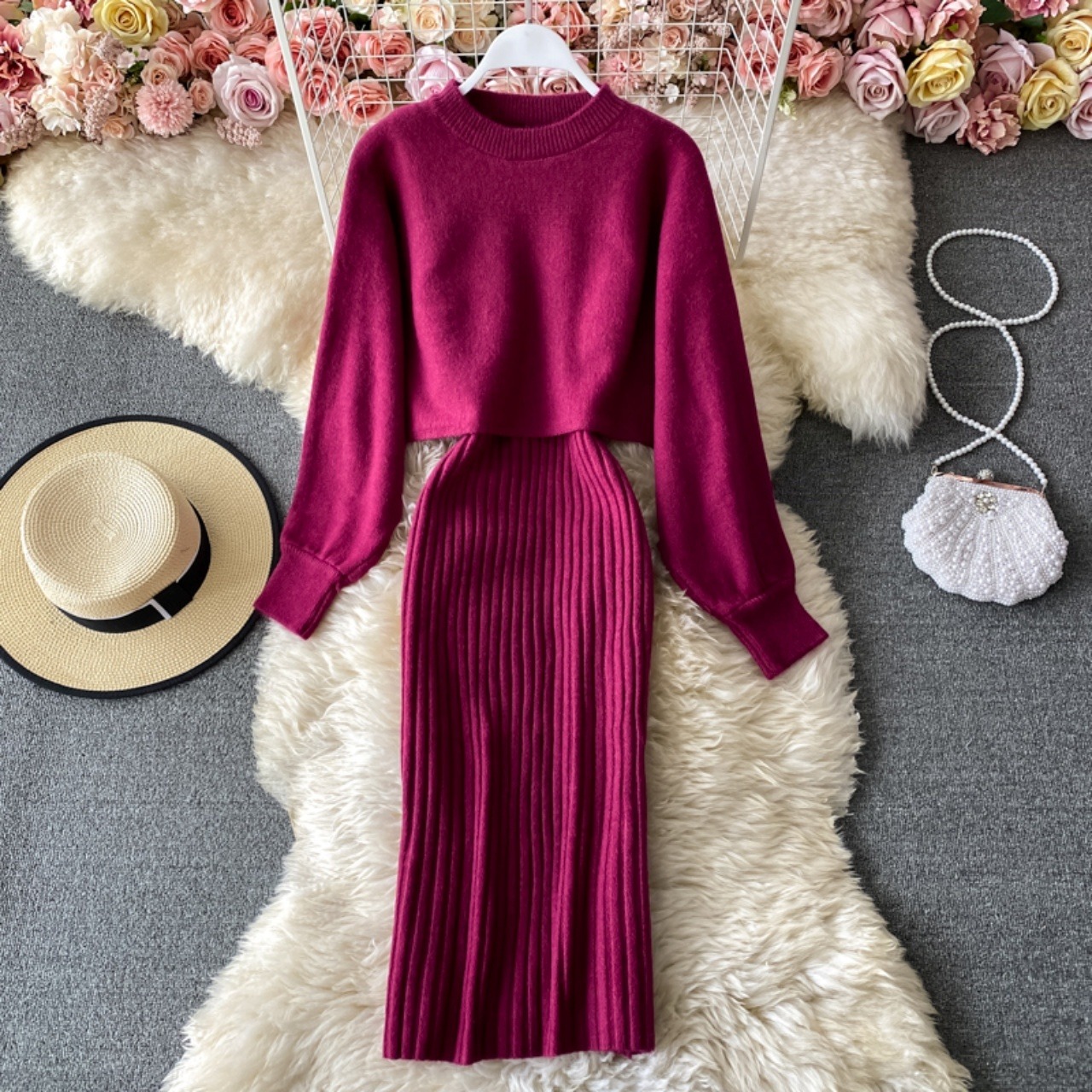 ニット×リブワンピのセットアップ♡