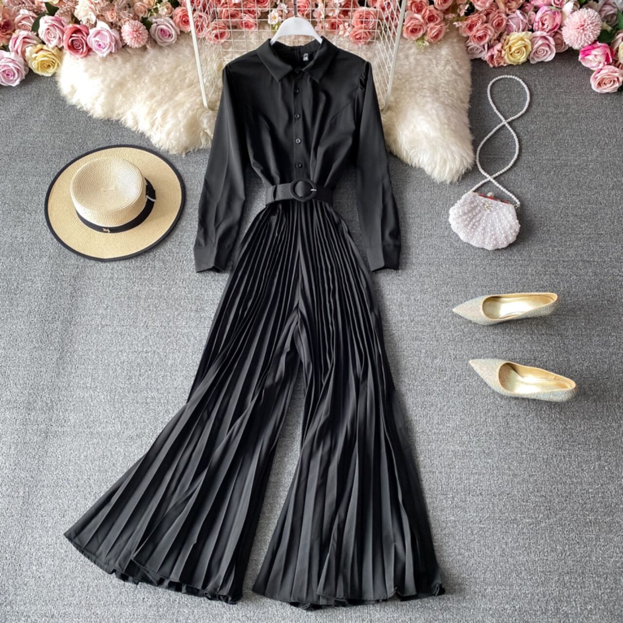 オールインワン レディース 襟付き シャツ 長袖 フロントボタン 飾りボタン ウエストマーク ベルト ハイウエスト プリーツパンツ バックファスナー かっこいい 大人女子 クール シンプル こなれ感 大人 カジュアル ラフ 存在感 7カラー カラー豊富 無地 ワンサイズ 春秋 学生 通学 OL ママ 休日 お出かけ イベント 食事会 女子会 ショッピング デート ホームパーティー 着回し ファッション 簡単コーデ スタイルアップ 楽ちん おすすめ 人気 トレンド モテ 体型カバー 脚長