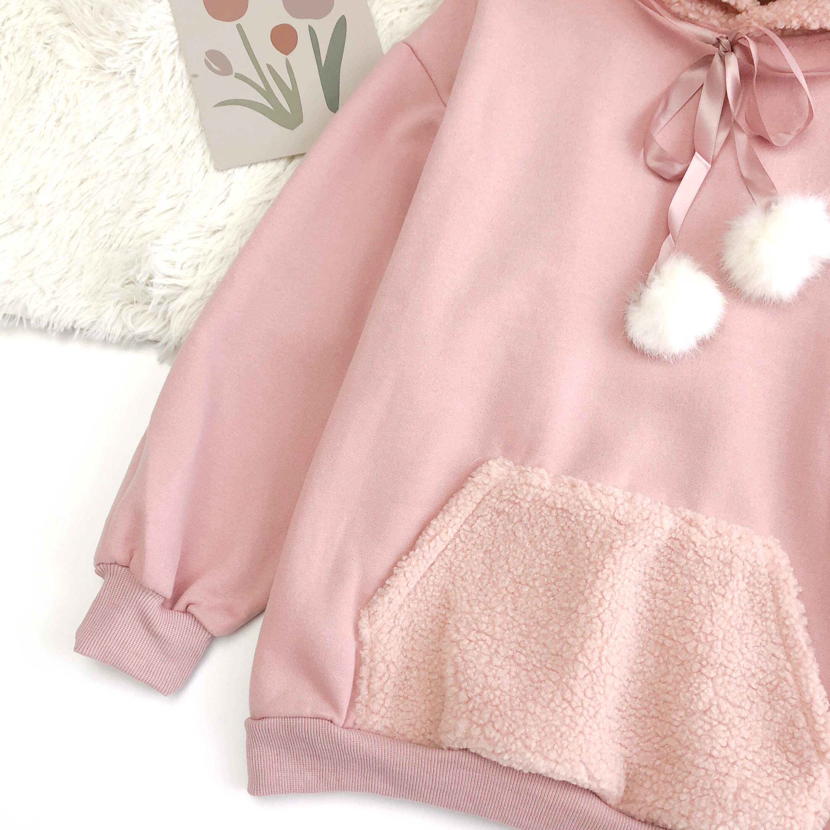 ボア素材のウサギ耳が付いた、かわいいパーカー♡