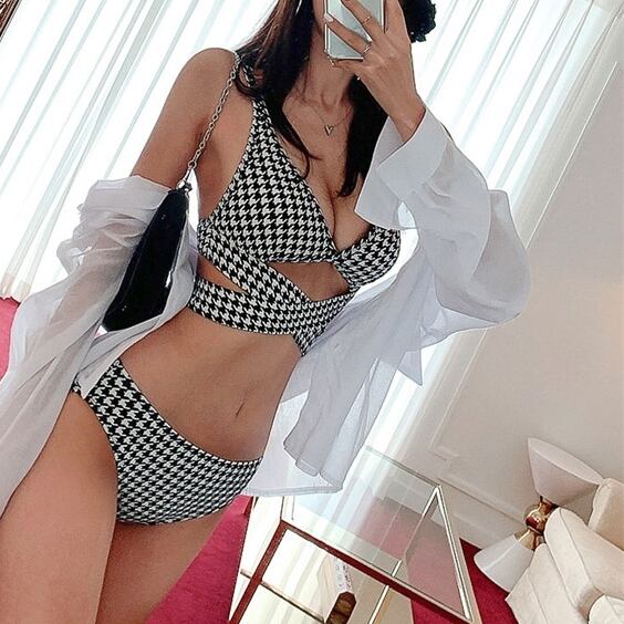 ビキニ 千鳥格子 上下セット 水着 スイムスーツス イムウエアー 新作 ウエストクロス デザイン重視 ちょいセクシー オシャレ トレンド トレンディ 大人かわいい ブラックホワイト シック トレンド水着 海外デザイン インポートファッション インスタ映え 映える プール 海 バーベキュー イベント 行動派 旅行 海外旅行 リゾートファッション プチプラ ランキング キュート お勧め 大人きれい きれいめ 大胆 大人ビキニ アクティブ 人気デザイン かっこいい シンプル 白黒 モダン プールサイド 素敵