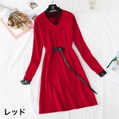 ワンピース ニット Aラインワンピース 7分丈 袖あり ニット 白 ホワイト 黒 ブラック 赤 レッド ミディアム丈 長袖 無地 春 秋 冬 セミフレア スリム Aライン ベルト 伸縮性 かわいい 大人可愛い きれいめ シンプル カジュアル 大人 上品 おしゃれ お洒落 大人可愛い 大人女子 抜け感 Vネック S M L XL 20代 30代 学生 通学 デート お出かけ 女子会 休日 旅行 着回し 韓国 韓国系 オルチャン ファッション コーデ モテ トレンド 流行 レディース