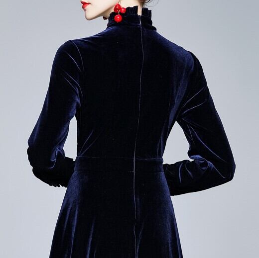 トレンドワンピースドレス ワンピースドレス 秋冬ドレス ベルベットドレス トレンドワンピース ドレスミディアム丈 ミディ ミモレ丈 秋冬ファッション ブルー S M L XL 2XL パーティー 二次会 飲み会 合コン 女子会 披露宴 発表会 ウエディング 海外ファッション レディースファッション レディース 婦人服 きれいめ こなれ感 長袖ワンピース フロントボタン フレンチスタイル インポート プチプラ ランキング 大人おしゃれ ベルベット素材 ベルベットドレス 切り替えしデザイン フレアースカート