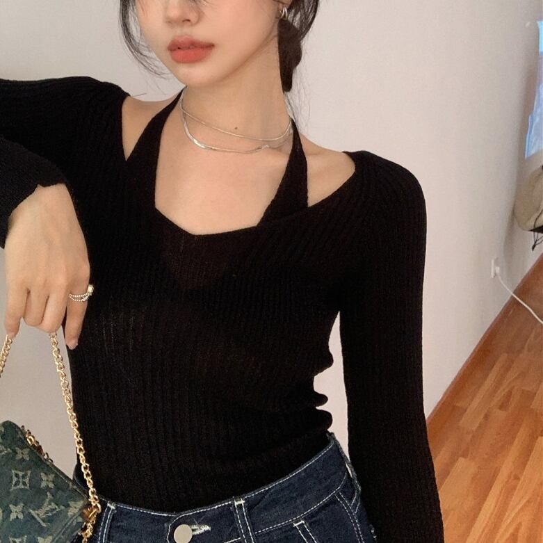 ニットシャツ ネックオフショルダー オフホワイト ブラック ブラウン セクシーデザイン おしゃれ女子 クール インポートファッション 海外デザイン 普段使い 韓国 新作 韓国風 こなれ感 人気 Vネック プルオーバー スリム フィット オールマッチカラー コントラスト ストライプニットトップス女性 マキシ 袖あり ワンサイズ ストリート かわいい 大人カジュアル 大人可愛い シンプル かっこいい こなれ感 ラフ 10代 20代 30代 ママ お泊まり お出かけ 休日 通勤 通学 OL オフィス デート