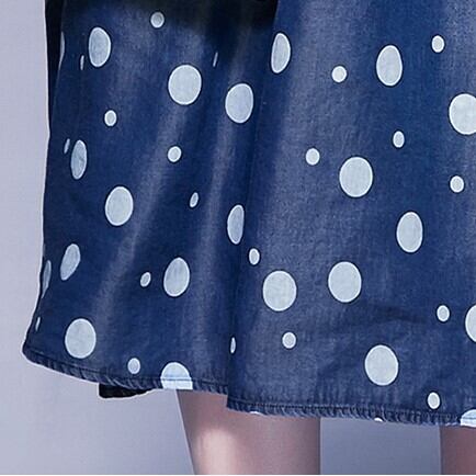 水玉模様がかわいいデニム素材のロングワンピースです♪