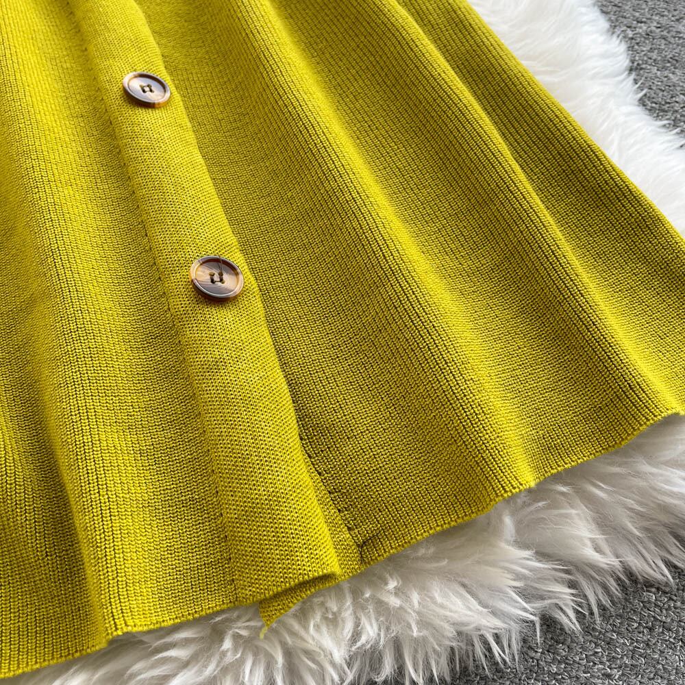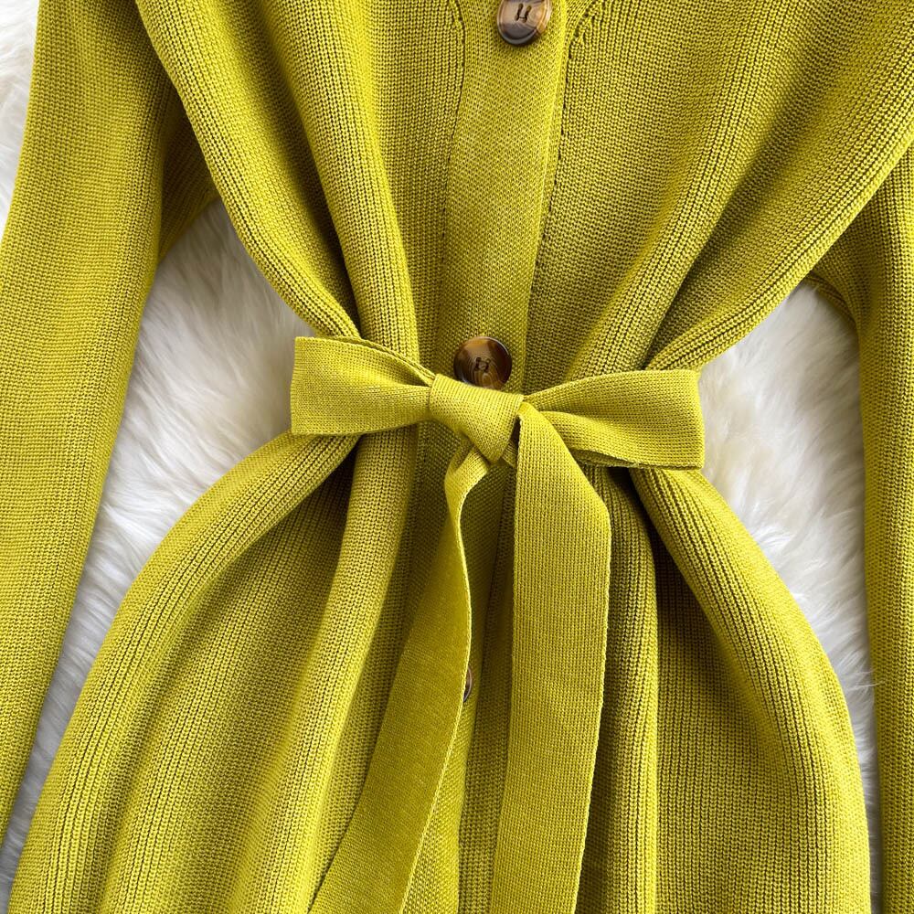ニットワンピース 秋冬ワンピース トレンド トレンディ シンプル 流行 暖かい ニットドレス ニット素材 ウエストリボンベルト 柔らかい Vネック フロントボタン 秋冬ファッション レディースファッション レディース 婦人服 インポートファッション ネットショッピング カジュアル ストリート ワンサイズ ブラック イエロー お出かけ 旅行 ショッピング 買い物 インポート ファッション かわいい 大人女子 無地 シック こなれ感 フレンチ ジェントルスタイル シングルブレスト セータースカート おススメ