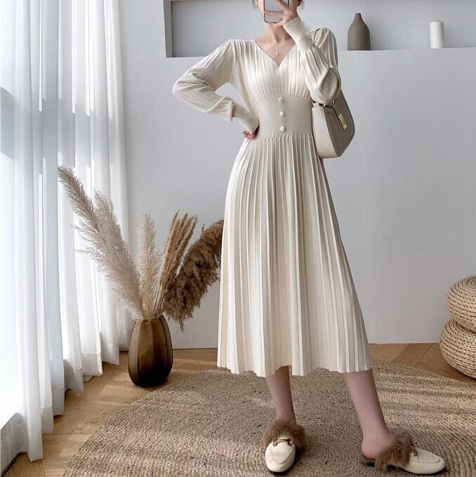 ワンピース ワンピースドレス Vネック プリーツワンピース ドレス パーティー プリーツスカート 秋冬トレンド トレンディ シンプル 流行 人気商品 ホットアイテム カジュアルワンピース お呼ばれ 普段使い こなれ感 普段着 パーティー イベント 海外デザイン インポート プチプラランキング 大人クール おしゃれワンピース オシャレ プチプラ 海外人気 インスタ映え 映え 10代 20代 30代 40代 ブラック ホワイト フロントボタン シック モダン 白 黒 S M L XL 女性用 ニットスカート
