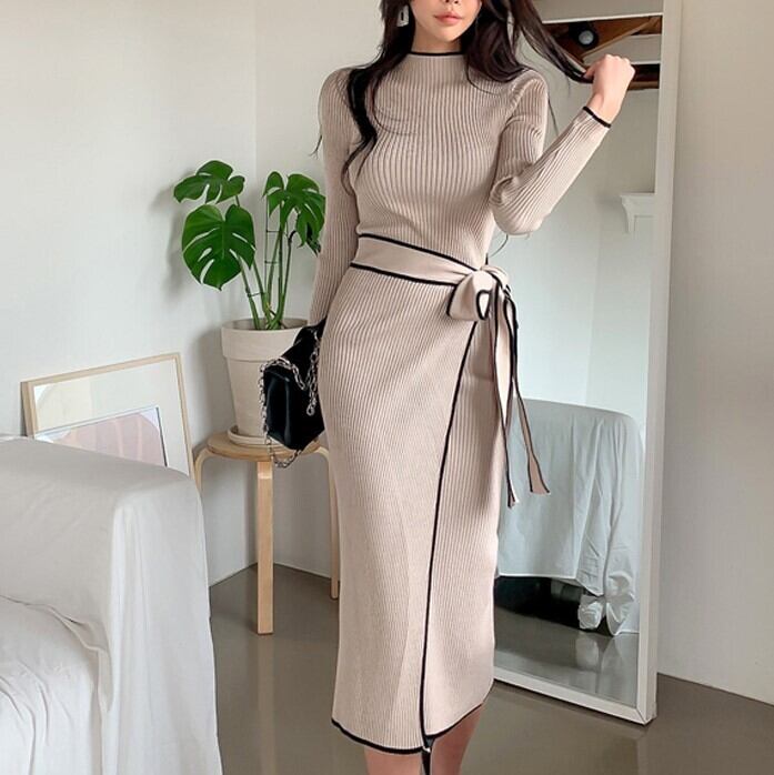 秋冬ワンピース 大人ワンピース ドレス ウエストリボン ミディアム丈 ワンピース ワンサイズ アプリコット ミディ 人気ワンピースドレス リボン 収縮性 トレンド トレンディ シンプル 流行 カジュアルワンピース お呼ばれ 普段使い こなれ感 見え高 20代 30代 40代 きれいめ シック クオリティ 海外デザイン インポート プチプラ ランキング 大人クール お出かけ お呼ばれ パーティー イベント 海外ファッション レディースファッション レディース 婦人服 クール オシャレ ニットセータードレス