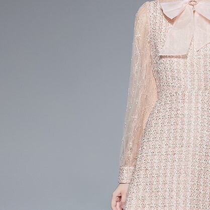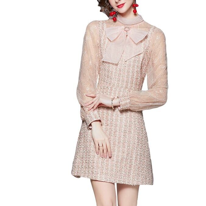 ワンピース かわいいワンピ ワンピースドレス トレンド トレンディ シンプル 流行 リボンネクタイ ミディアム ミディ丈 秋冬コレクション シースルー メッシュスリーブ ステッチ ツイード フェイクツーピースドレス パーティー イベント 海外ファッション ファッショナブル デザイン重視 ラブリー 透け感 セクシー 美脚 海外デザイン インポート プチプラ ランキング 大人クール ホットアイテム レディースファッション レディース 婦人服 モテ かっこいい大人 クールワンピース 主役級 ウエディング 人気