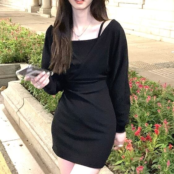 ワンピース フェイクワンピース 長袖ワンピース ブラック グレー 定番カラー ラクチンコーデ ゆるかわ カジュアル 普段着 普段使い 着回し ホットアイテム キャミソール Aラインワンピース ミモレ丈 長袖 無地 セミフレア かわいい 大人可愛い きれいめ シンプル カジュアル 大人 上品 おしゃれ お洒落 大人可愛い 大人女子 エレガント モダン フォーマル Vネック ミモレ 袖あり ニットデート お出かけ 女子会 休日 パーティー イベント コーデ スタイル 楽ちん 新作 トレンド 流行 インスタ映え