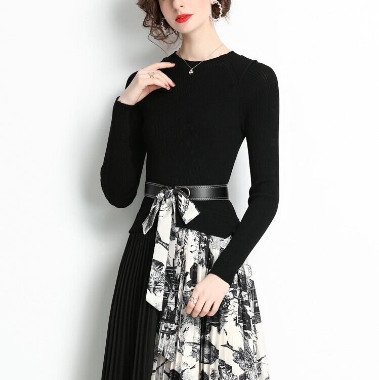 ニットワンピース ドレス ニット素材 秋 冬 トレンド トレンディ 流行 レディースファッション 婦人服 ブラック M L XL 2XL レトロ風 デザイン 大人可愛い パーティー イベント お呼ばれ パーティードレス オシャレワンピース 二次会 お出かけ お呼ばれ 二次会 披露宴 発表会 ウエディング ファッショナブル プチプラ インポート プチプラ 大人きれい ウエストリボン ウエディング 人気アイテム ホットアイテム 長袖プリーツワンピース 素敵 インスタ映え 映える 主役級 メンズライク モテ