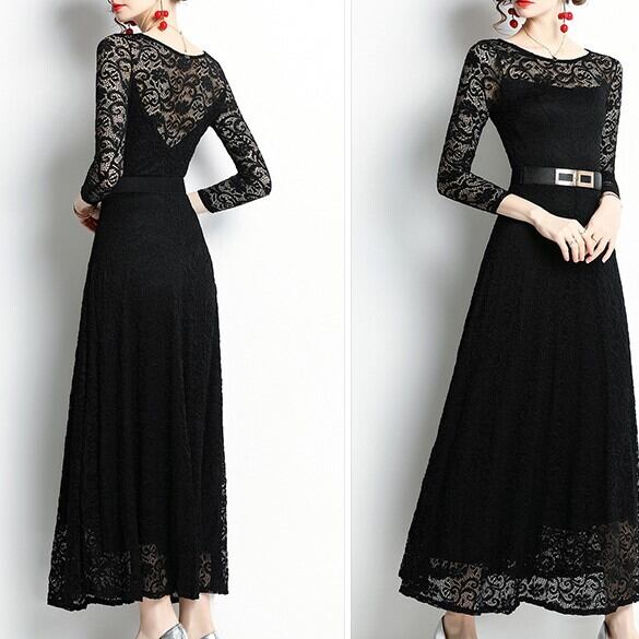 レース使いが綺麗なシースルーブラックドレスです^^