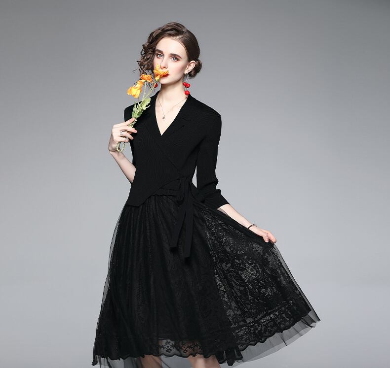 ワンピース フェイクワンピース リボン 透け感 シースルー 茶色 コーヒー 黒 ブラック チュールスカート ひざ丈 膝丈 膝下 ミモレ丈 ミモレ 袖あり 7分袖 七分袖 襟付き ノッチドラペルカラー 切り替えデザイン 異素材MIX レース チュール かわいい 大人可愛い 大人 大人女子 レディース きれいめ おしゃれ お洒落 ガーリー 10代 20代 30代 通勤 学生 通学 デート お出かけ 女子会 休日 イベント 普段使い カジュアル こなれ感 抜け感 上品 エレガント フローラル 花柄 ボタニカル