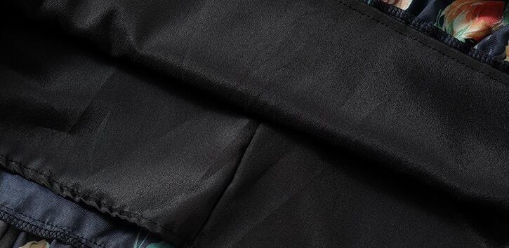 水彩画のようなバラとはっきりとプリントされたバラのミックスがユニーク。