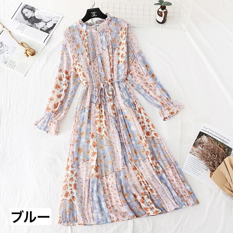 ワンピース フレアワンピース Aラインワンピース 花柄 小花柄 フラワー マキシ丈 長袖 柄 春 秋 冬 セミフレア Aライン シフォン 伸縮性 かわいい 大人可愛い レディース きれいめ シンプル カジュアル 大人 上品 おしゃれ お洒落 大人可愛い 大人女子 キュート 個性的 Uネック ミモレ 袖あり 青 ブルー 緑 グリーン 黄色 イエロー ピンク くすみカラー S M L XL 2XL 20代 30代 デート お出かけ 女子会 着回し 普段使い モテ プレゼント トレンド 流行 インスタ映え